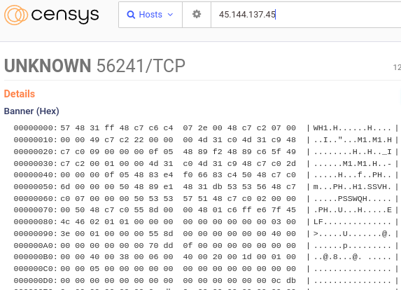 While different generated payloads may produce varying data in Censys, the “nobbler” gadget simplifies the process by examining the first few bytes at different offsets to uncover commonalities in the raw data. To top it all off, we now know that anything matching this Censys search query is most likely related to Metasploit!