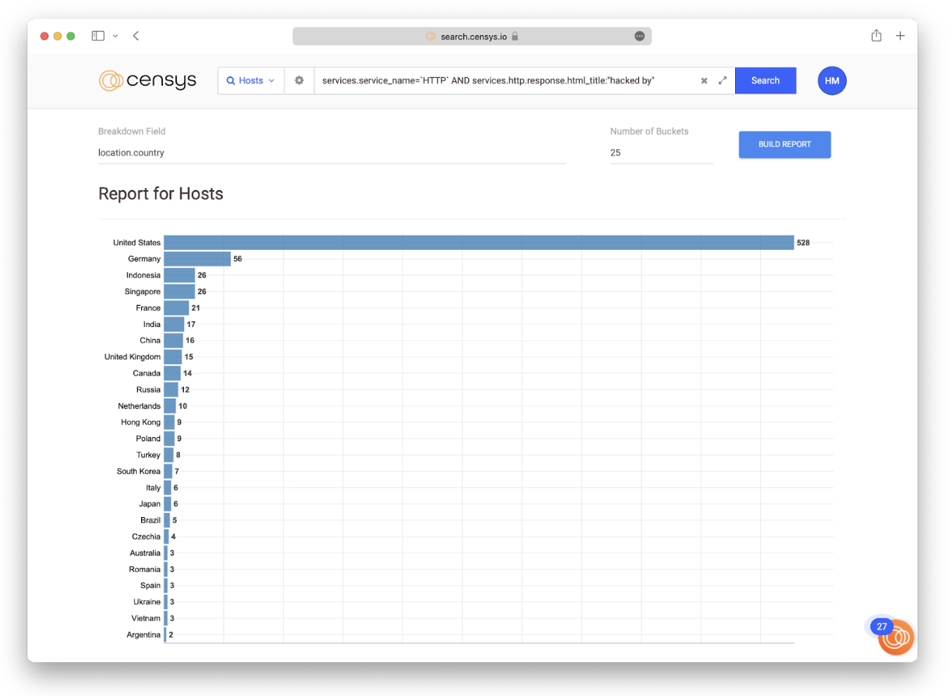 A suggested first step is to begin exploring interesting Internet-wide security trends by analyzing data on a global scale with Censys searches, relying on our report builder function: