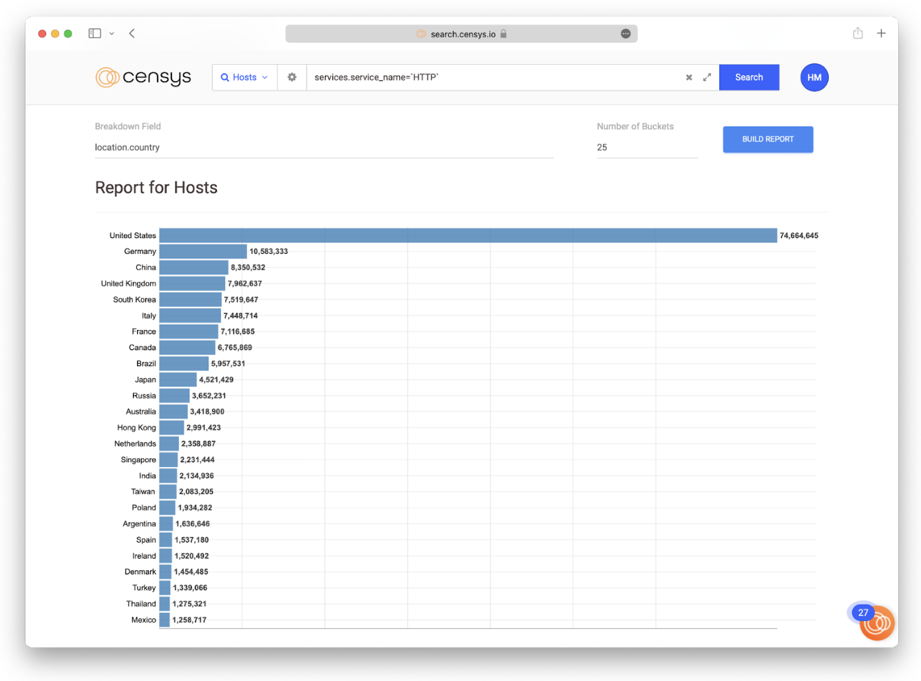 - The number of total hosts running HTTP by country (see the figure below)