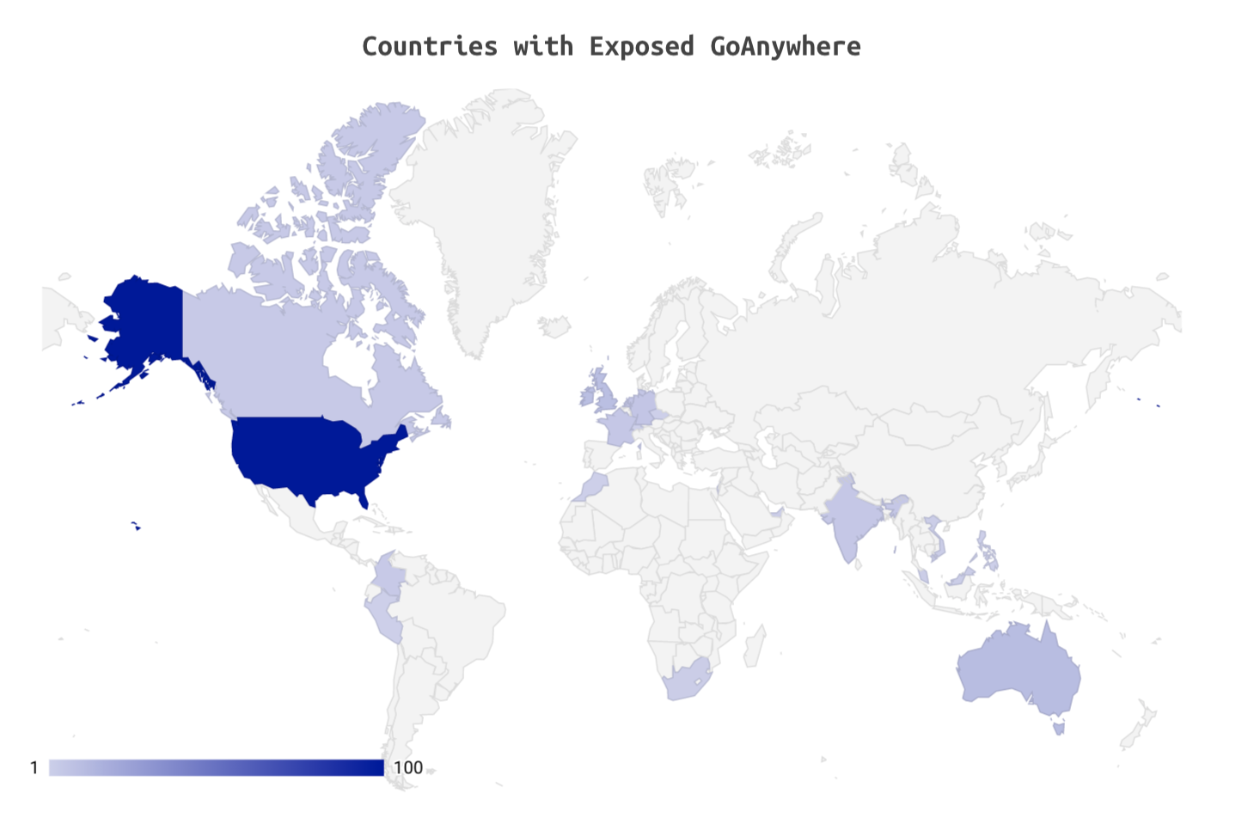 The U.S. has the highest concentration of GoAnywhere MFT Exposures