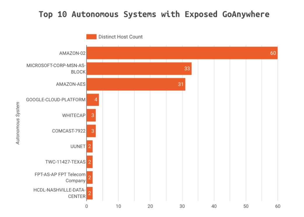 Amazon and Microsoft networks have the most GoAnywhere MFT Exposures