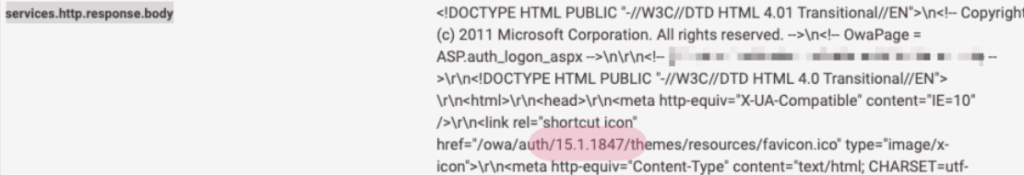 | HTTP Servers with Outlook-like Responses | services.http.response.html_tags: “<title>Outlook</title>” |