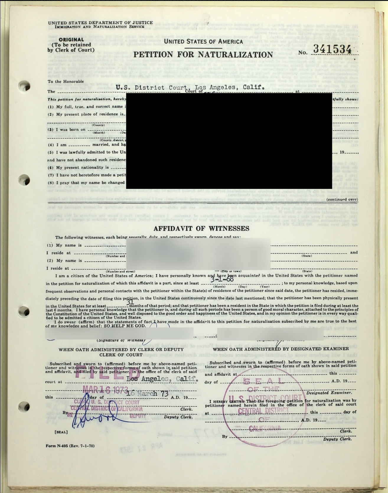 The selection of a U.S. naturalization petition is not accidental. This is not a generic stock image or a blurred document placeholder. It is a specific government form, from a specific legal process, with cultural and emotional significance to a specific population.
