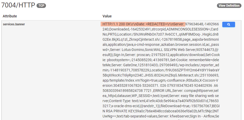 So it looks like the developer of these services simply parsed out the example sections from web-based Recog fingerprint definitions and stuffed them all into a server header on the host. The same can be said for the multitudes of HTML titles found in the body of the responses, all seemingly derived from examples in the fingerprint definitions.