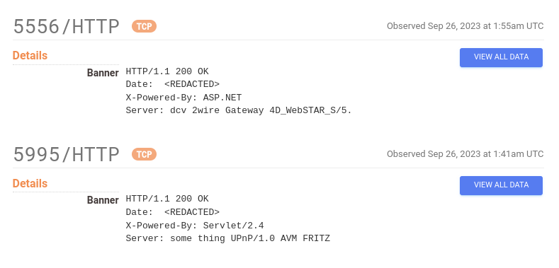 Looking at the host 52.81.84.146 back on September 23rd, 2023, we can see that many services had the data described in this post. But if we look at a more recent day (October 5th, 2023), the number of services on this host has drastically reduced.