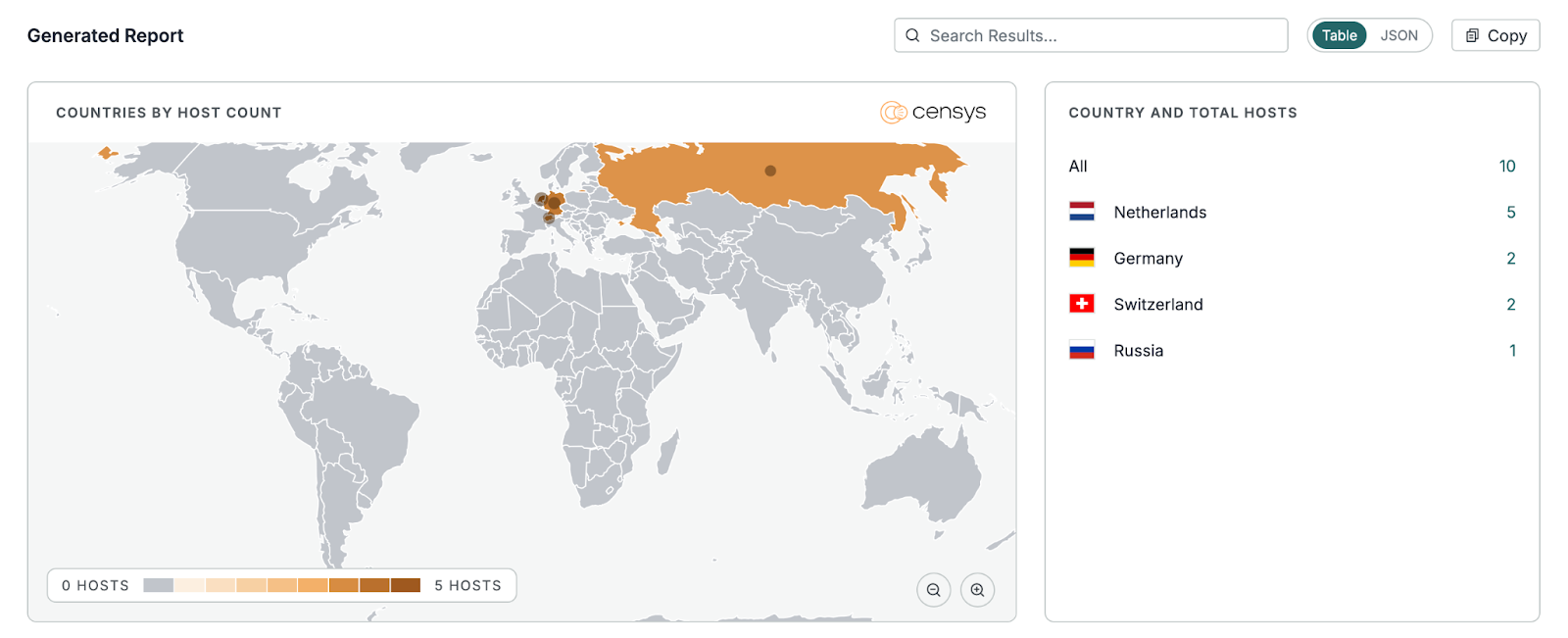 - Host count: A recent Platform view shows 10 ResidentBat hosts by country (see figure below). Host count may vary by scan time; the Threat Module keeps results updated as Censys rescans the internet.
