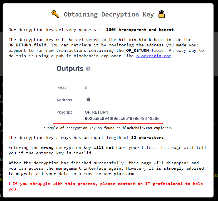 Instead of encrypting the entire device, which effectively takes the device offline (and out of the purview of Censys), the ransomware only targets specific backup directories for encryption and vandalizes the web administration interface with an informational message explaining how to remove the infection.