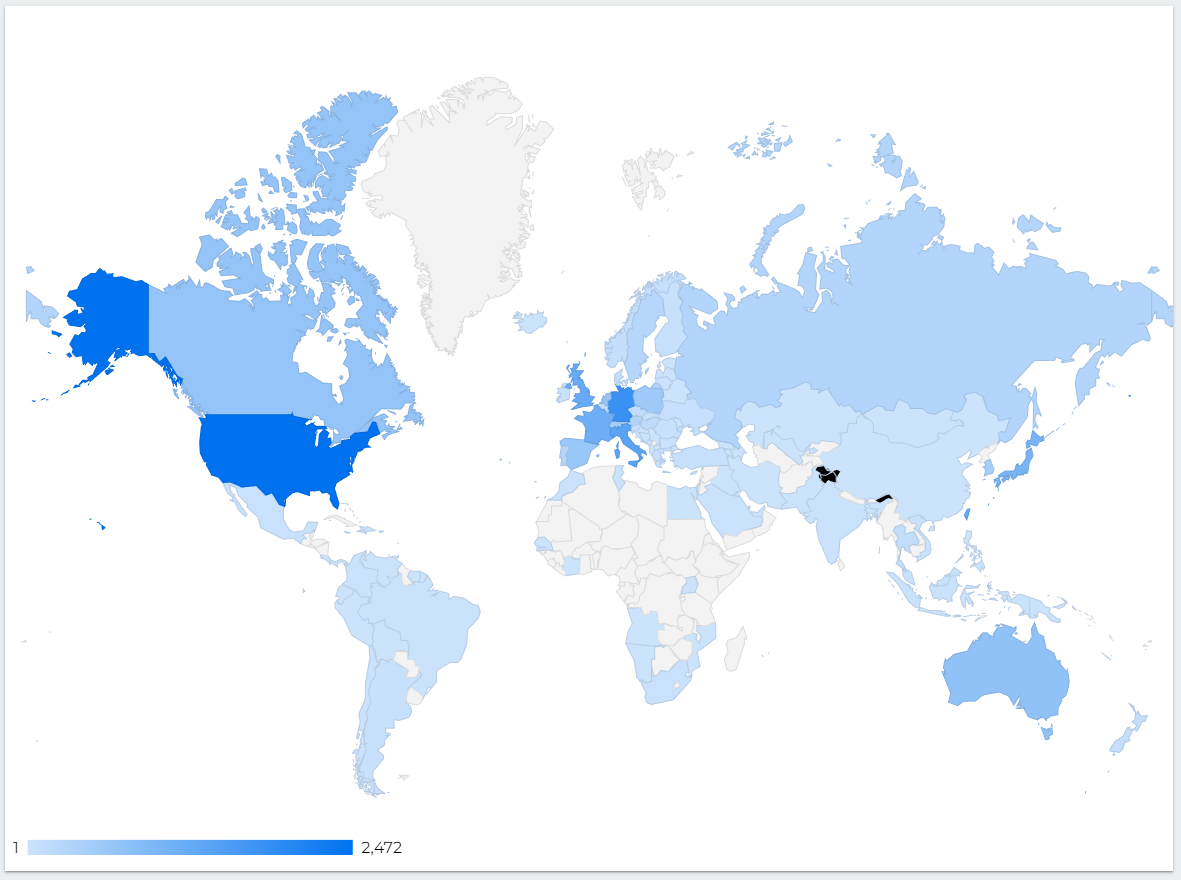 At its height, on September 4th, 2022, the majority of infections were found in the United States, with 2,472 distinct hosts showing signs of Deadbolt, Germany number two with 1,778, and Italy with 1,383. Below is a map displaying the infected hosts from this date.