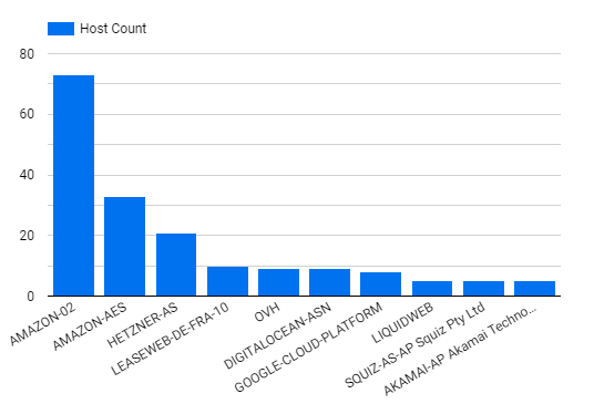 A bar chart displays host counts for various countries, with the United States having the highest and Singapore the lowest.