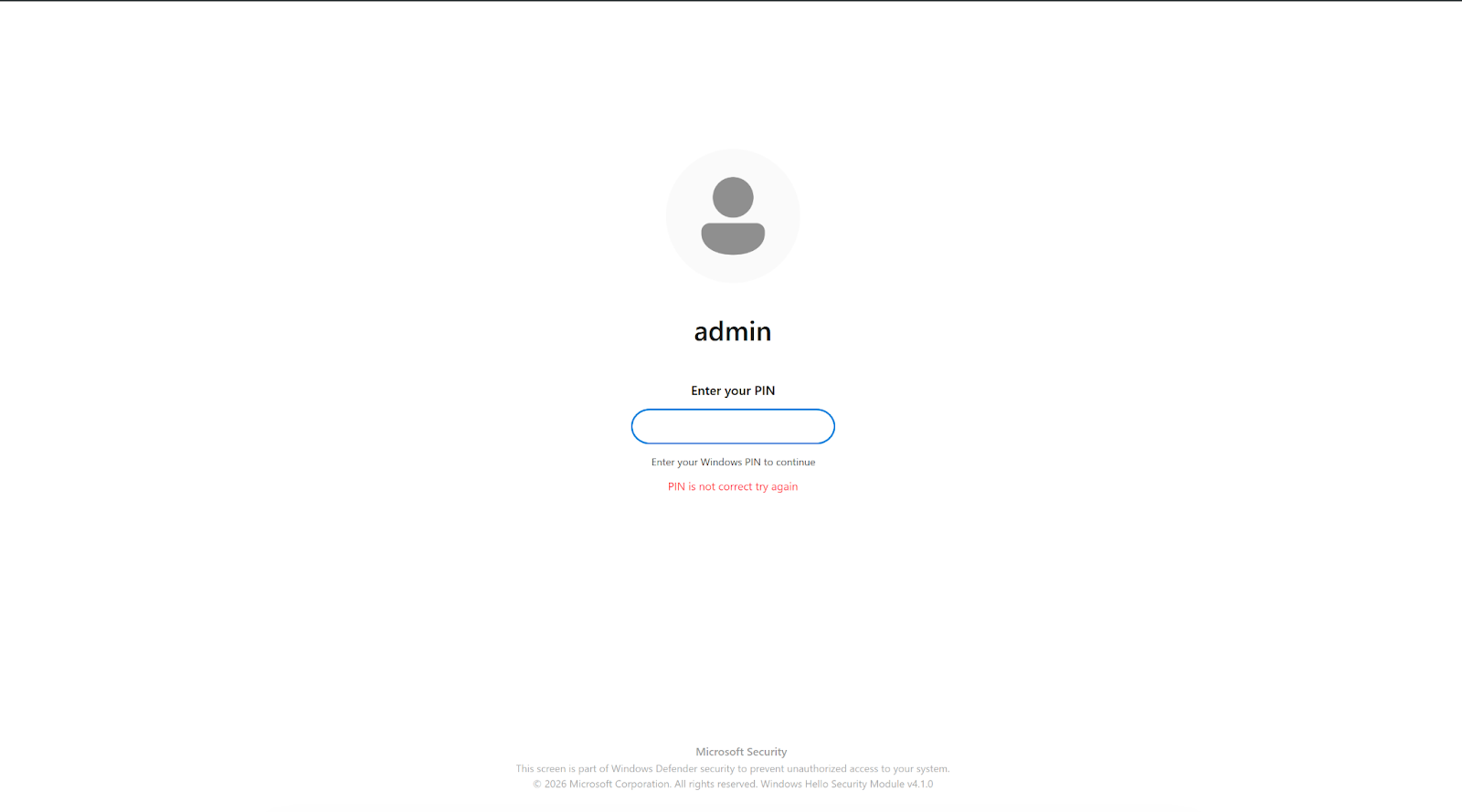 • Credential harvesting: Full WPF application mimicking a Windows Hello PIN prompt, complete with the victim’s real display name, account photo, theme detection, and Lottie animations ripped from genuine Windows assets. A low-level keyboard hook blocks Alt+Tab, Alt+F4, and the Win key to prevent escape. Captured PINs are validated against the real Windows credential prompt via UI automation before acceptance.