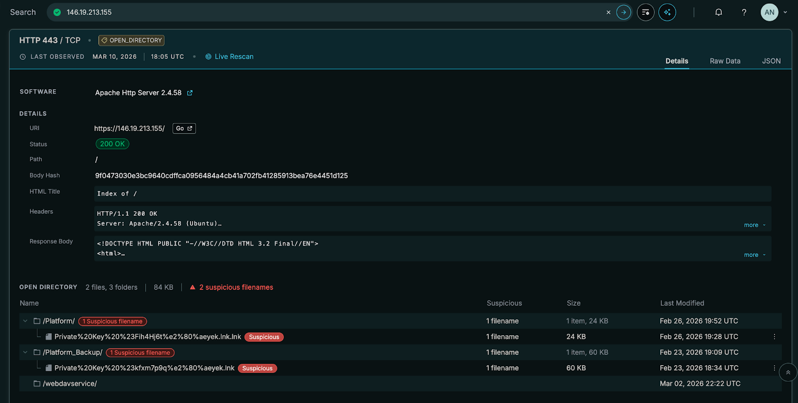 • Use host.ip: 194.33.61[.]36 or host.ip: 109.107.168[.]18  and add the SSH host key fingerprint (6106ea733ed6263f18d8bb63c5696f2ae6c1383cab887a02f18f1af38107f9d4) to collections (and applicable watchlists) to detect infrastructure rotation.