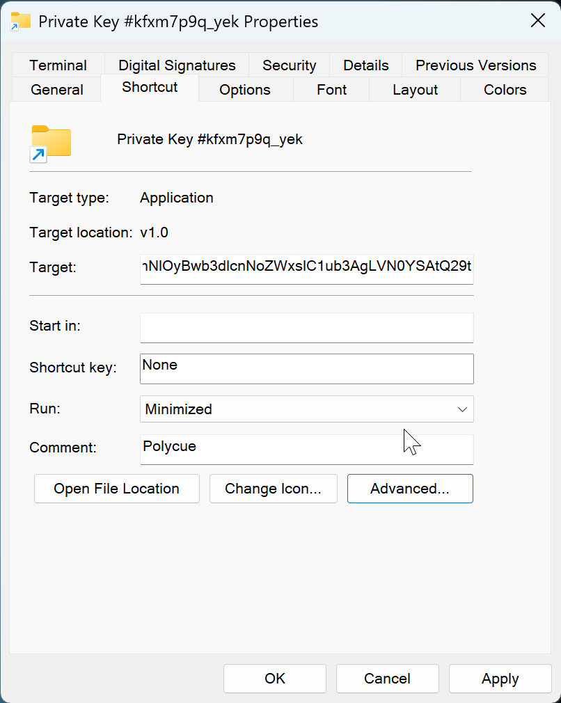 LNK properties showing “Polycue”