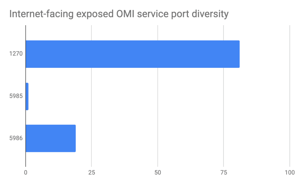 Using a specific payload to pull versions from the OMI service, Censys ran a subsequent search for exposed OMI hosts. We were able to discover 101, up from 56 previously with a scan only containing the Content-Type header: