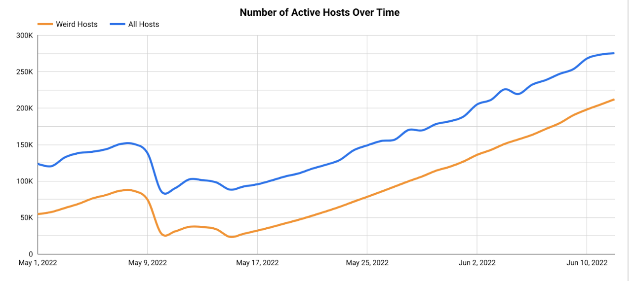 - The trends in our “weird” hosts track pretty closely with those of all hosts in this Autonomous System.