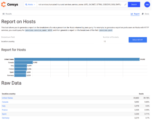 Using our search app, we can look a little deeper into where the hosts with an OT protocol are running. According to Censys’s data, 40% of services running OT protocols are located in the United States!