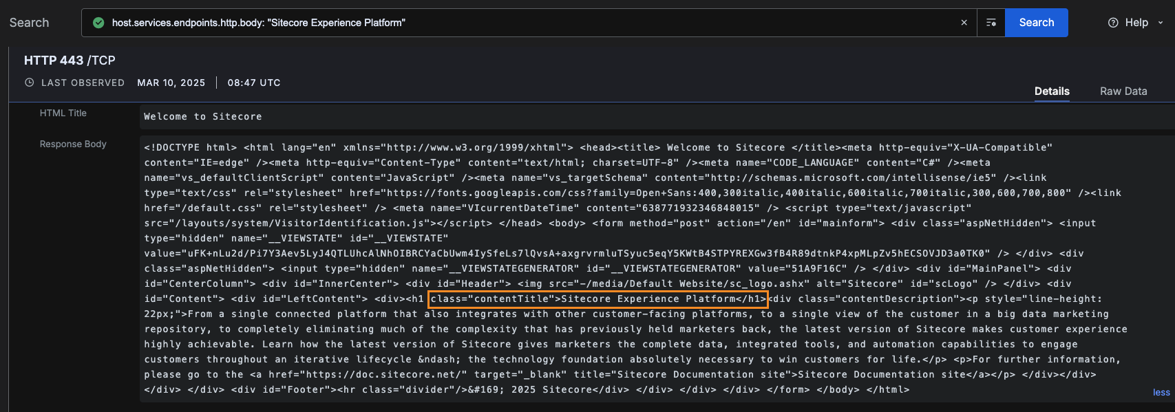 host.services.software: (vendor:”Sitecore” and product:”Experience Platform”) or web.software: (vendor:”Sitecore” and product:”Experience Platform”)